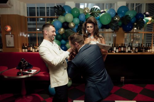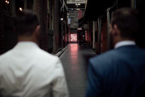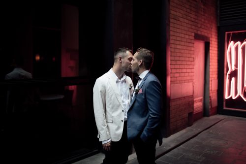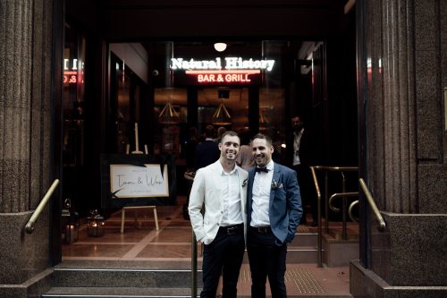 Natural history public bar wedding venue was the perfect inner-city Melbourne venue for these gentlemen to come together and say their “I-Do’s” with all their closest friends and family. We walked around the city before the ceremony and found some really cool places for photos including some neon signs and the sun peeking its way through the older tall buildings in downtown.